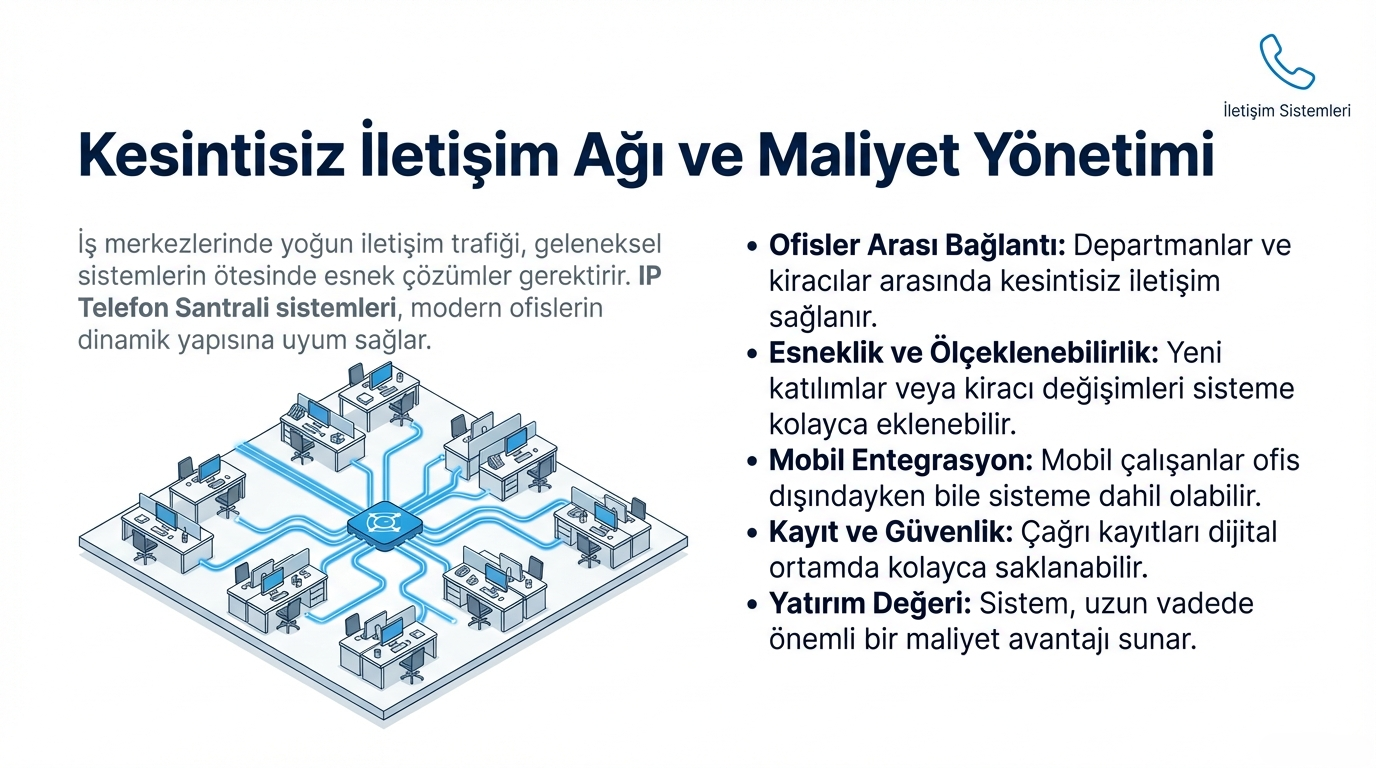 İş merkezlerinde yoğun iletişim trafiği etkin şekilde yönetilmelidir. Bu sistemlerle: