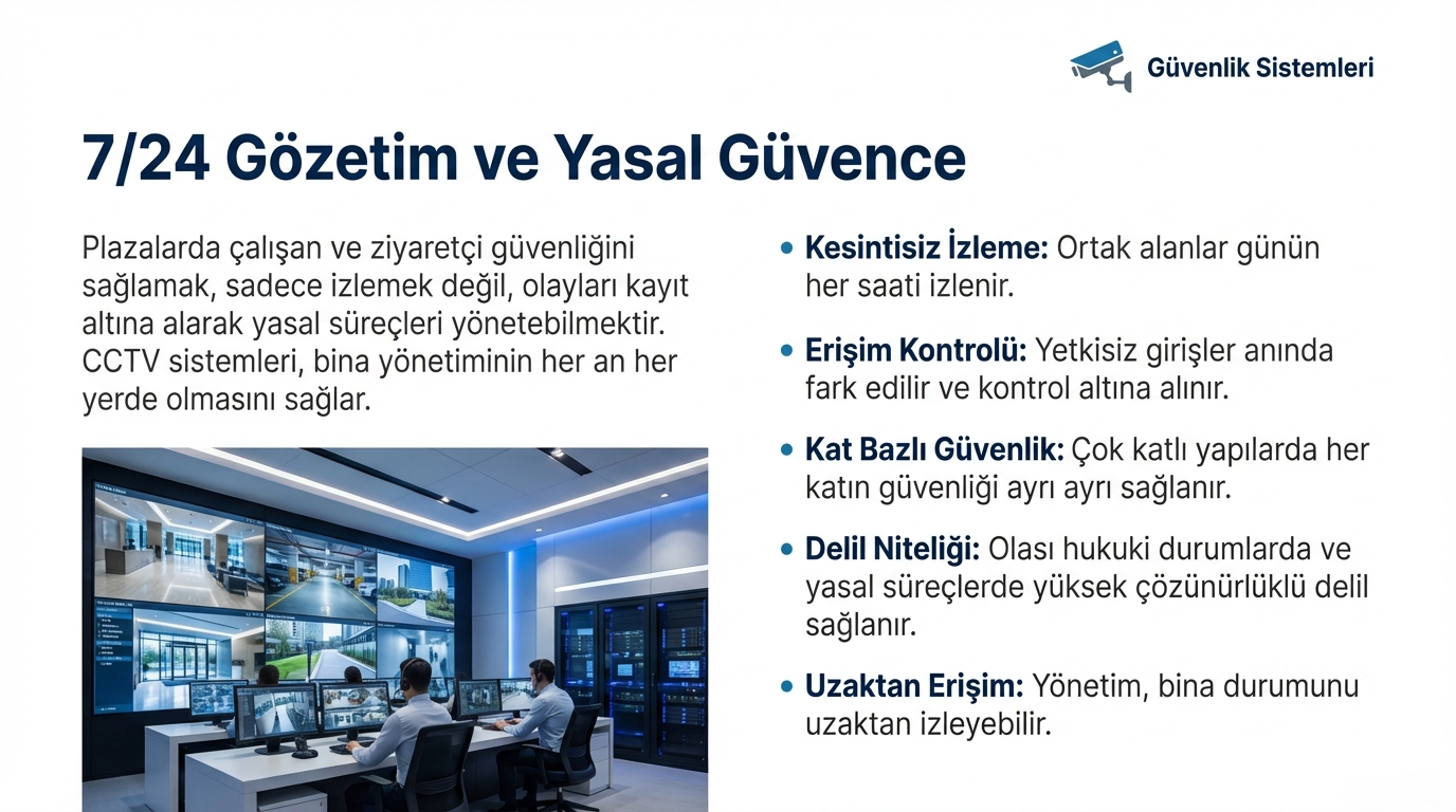 Plazalarda çalışan ve ziyaretçi güvenliği için kamera sistemleri vazgeçilmezdir. Bu sistemlerle: