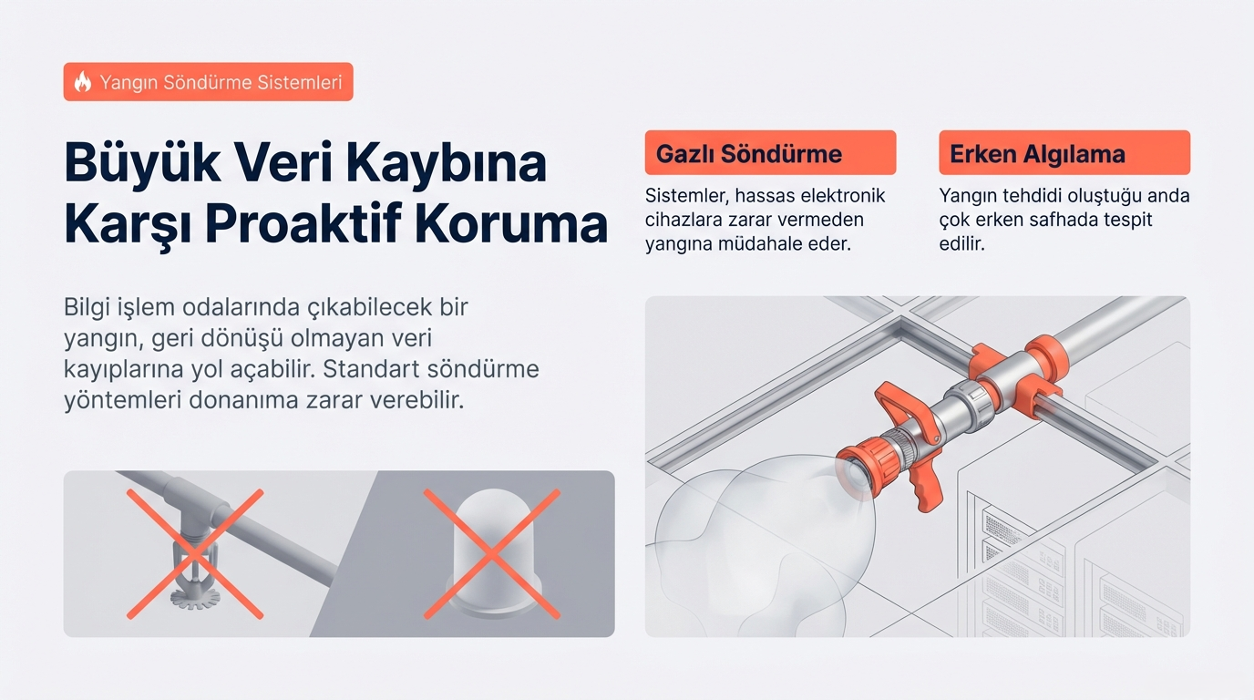 Bilgi işlem odalarında yangın, büyük veri kaybına neden olabilir. Bu sistemlerle:
