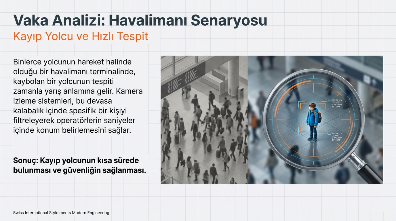Örneğin havalimanında kaybolan bir yolcu, kamera kayıtlarıyla kısa sürede bulunabilir.