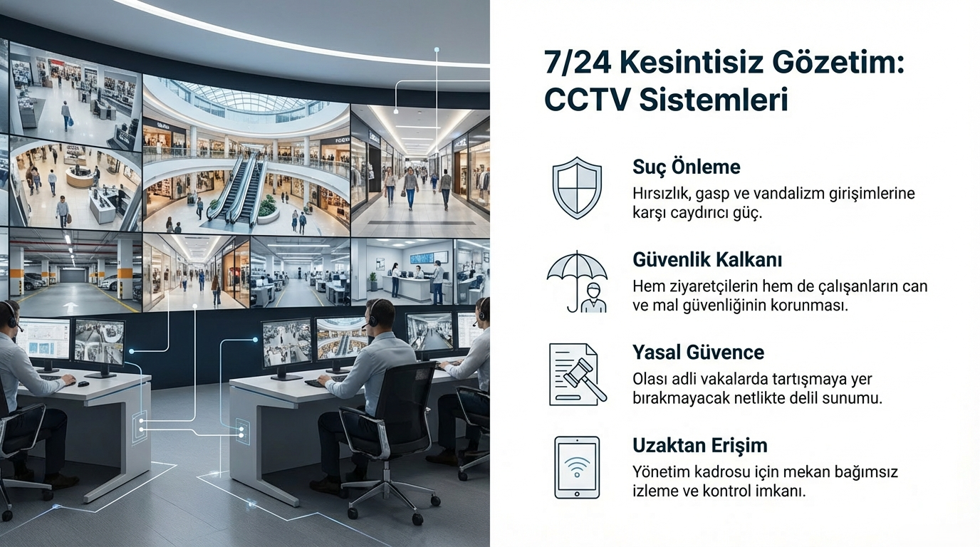 Alışveriş merkezlerinde ve mağazalarda güvenlik en önemli konulardan biridir. CCTV sistemleri sayesinde: